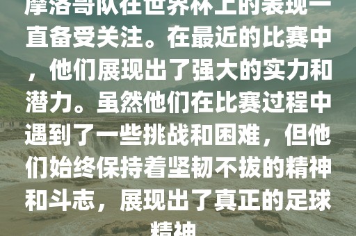 摩洛哥队在世界杯上的表现一直备受关注。在最近的比赛中,他们展现出了强大的实力和潜力。虽然他们在比赛过程中遇到了一些挑战和困难,但他们始终保持着坚韧不拔的精神和斗志,展现出了真正的足球精神。