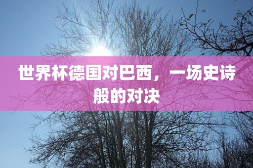 德国队与巴西队的世界杯对决是一场令人期待的比赛,无论是实力对比还是比赛风格,都充满了看点,在这场比赛中,无论是哪一队获胜,都将是一场令人难以忘怀的比赛,让我们拭目以待,见证这场史诗般的对决!