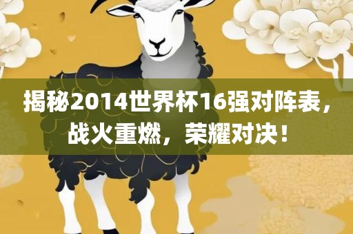 四年一度的世界杯足球盛宴再次点燃战火,全球球迷瞩目的焦点齐聚一堂,在这篇文章中,我们将为您揭晓备受期待的2014世界杯16强对阵表,带您领略这场足球盛宴的荣耀对决,让我们共同期待这场激烈的角逐,见证每一个精彩瞬间!