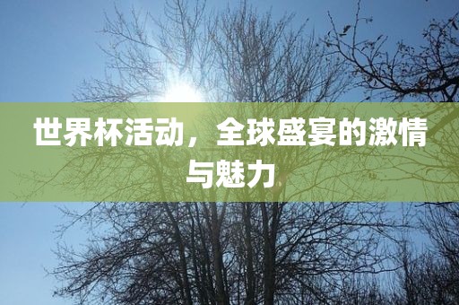 世界杯活动是一场全球范围内的狂欢盛宴,它不仅代表着足球运动的最高水平,更是全球各国文化、历史和传统的交流展示平台,通过参与世界杯活动,我们可以感受到足球运动的魅力与激情,也可以更好地了解世界各地的文化与风情。